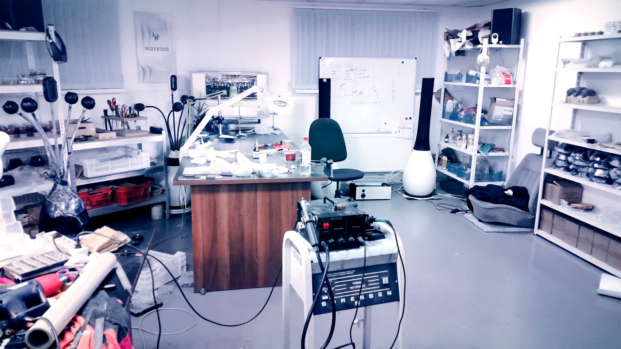 Acoustic testing of one of the first Waveion ionic acoustic prototypes.